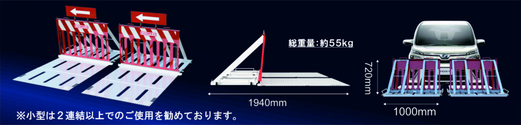複数台をチェーンで連結することで、さらに阻止効果を高められます。連結チェーンは衝突実験で切れなかった強力チェーンを採用。