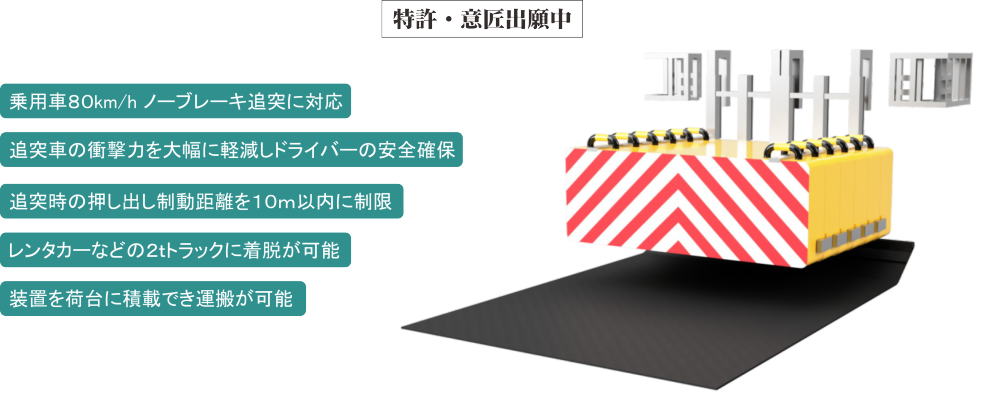 80km/h追突対応・どこへでも運べる車載安全緩衝装置