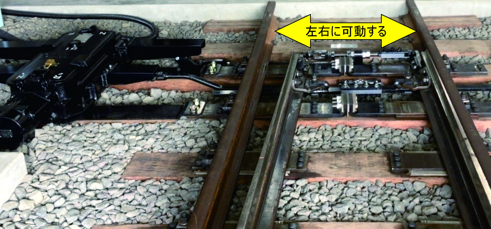 列車の進行方向を切り替えるポイント設備は、機械式でレールが可動する仕組みとなっております。