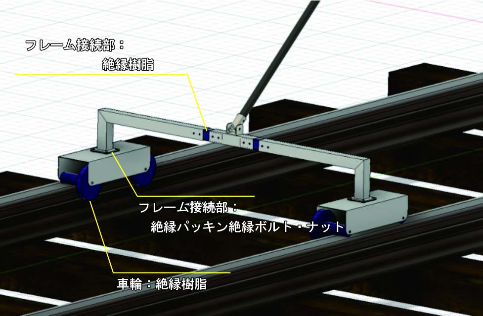 また、両サイドのレールの電流が通電し短絡しないように3重の絶縁構造にしております。
