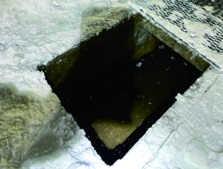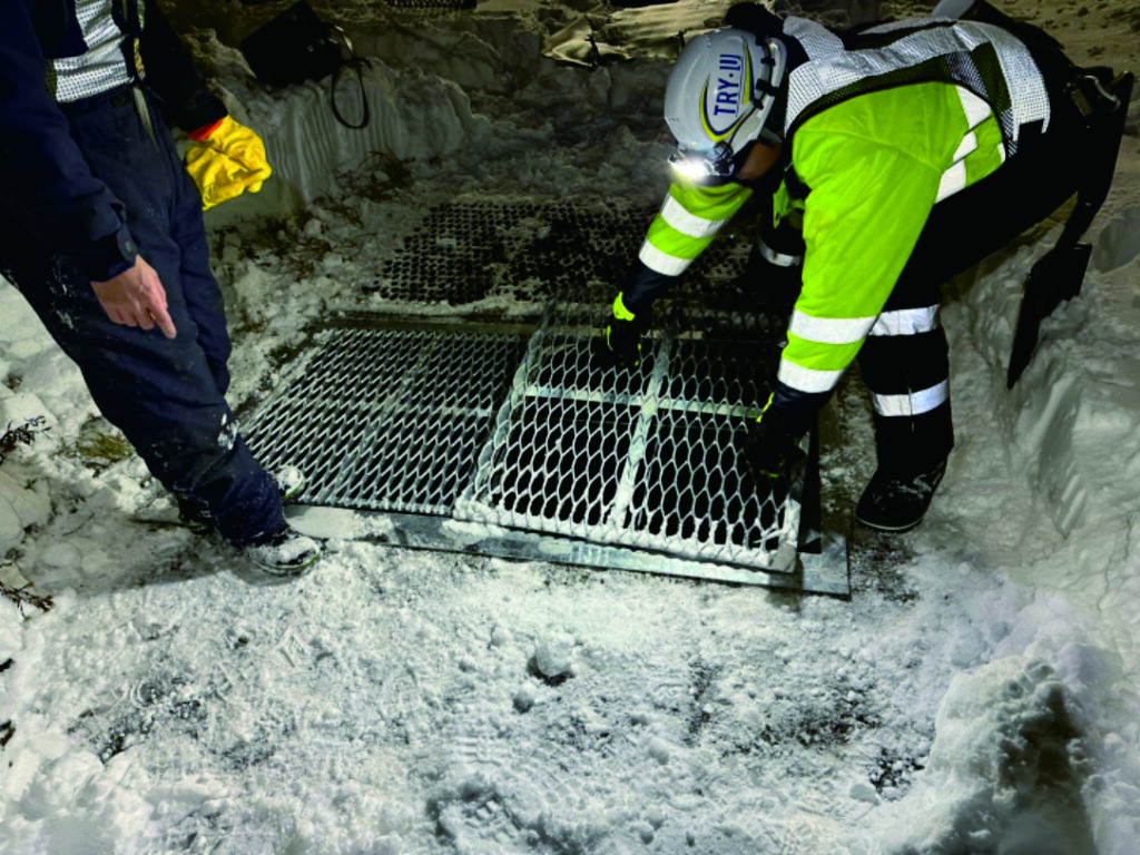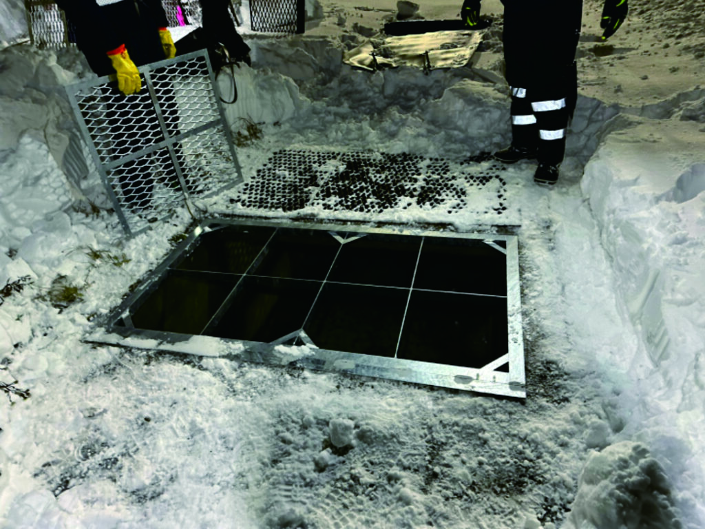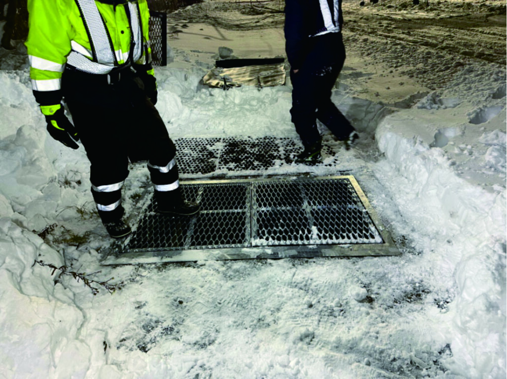 開発した流雪溝落下防止枠は、北海道の雪質に合わせて詰まらせることなくスパッと枠で切り落とすことができ、作業員が万が一落下しても流されることのない設計にしています。