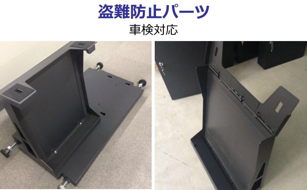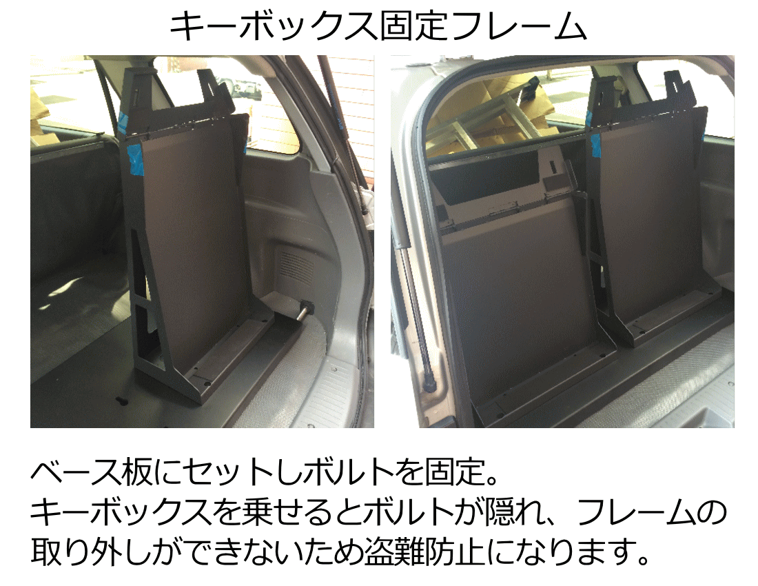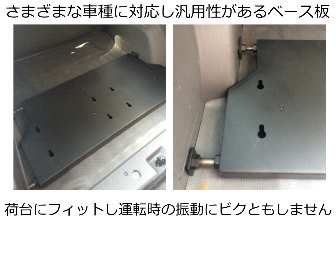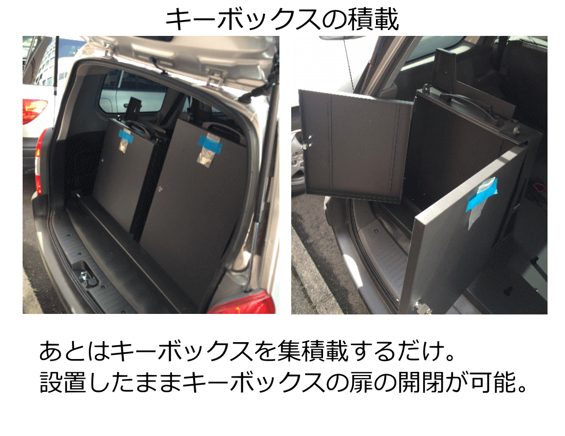 いくつもの種類の車種に対応、都度の積載作業が容易、積載したまま鍵の出し入れにストレスなく、車両から離れる際も盗難防止対策も容易、そして車検に対応。を設計し製作!